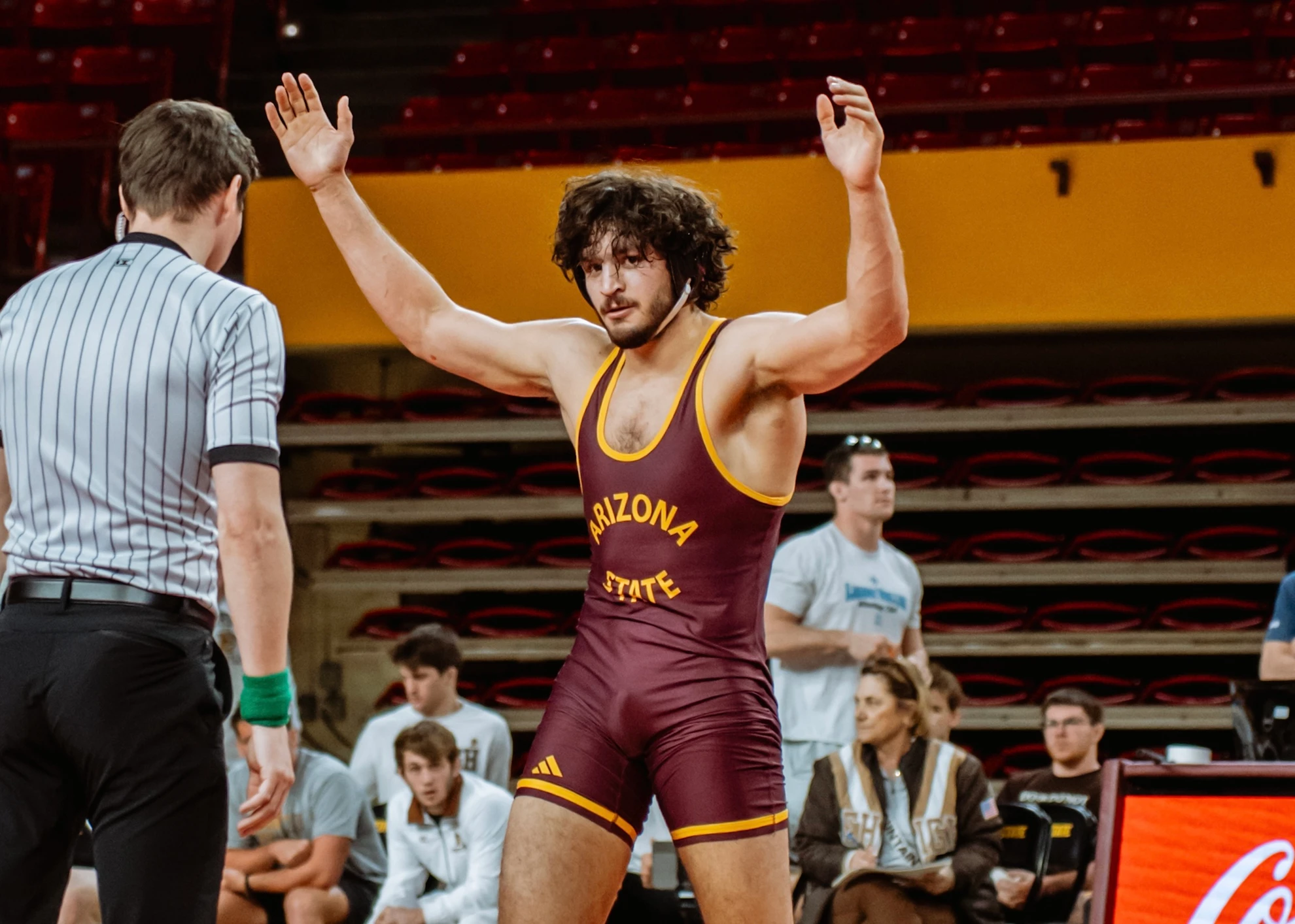 After the eventful 165lb matchup, graduate student Cael Valencia stepped up for his first match against Lehigh this season, and his last home dual as a Sun Devil.
