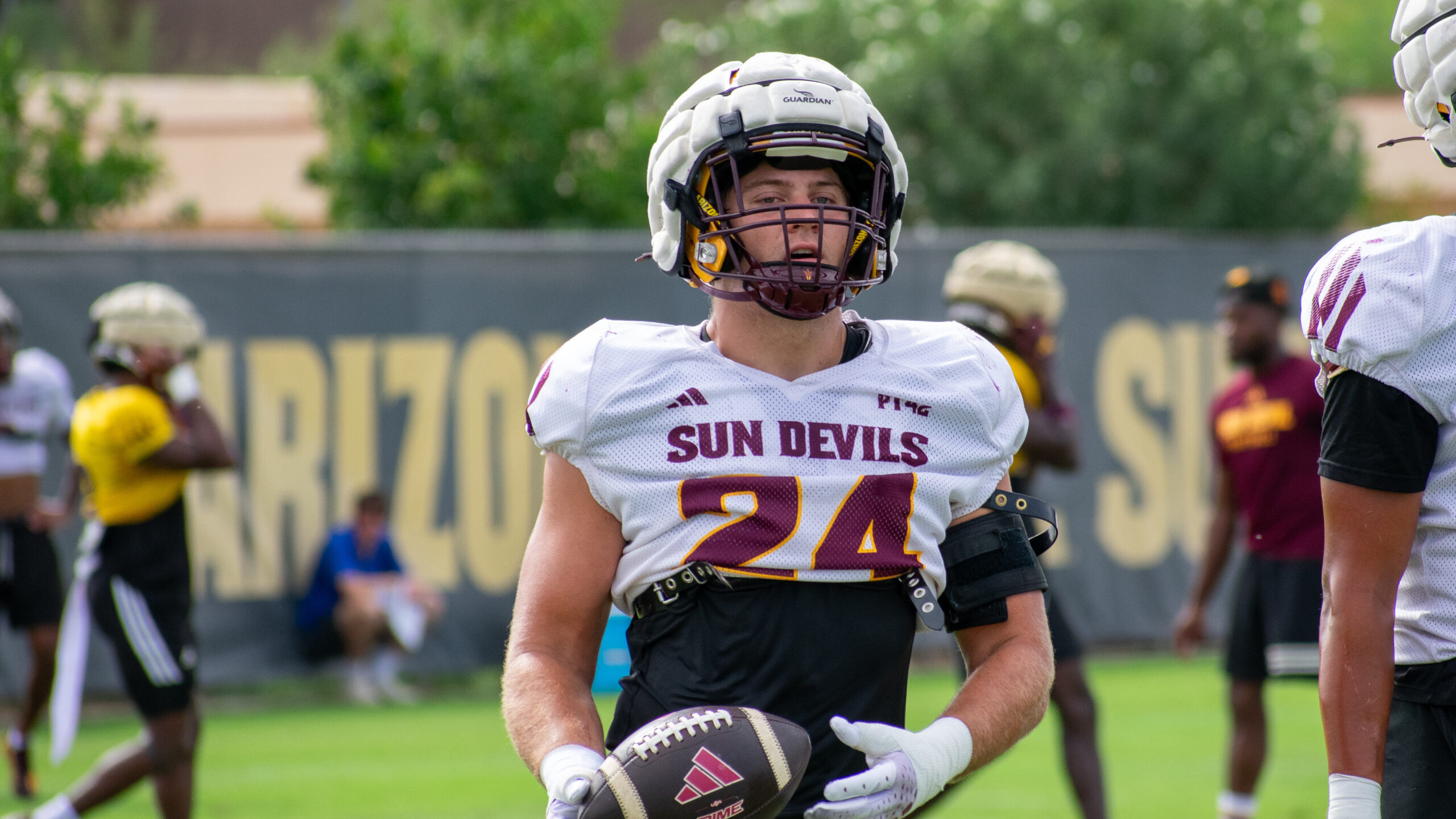 Coming off a season of heavy workload, Romney had his sights set on the Sun Devils’ 2024 opener against Wyoming. However, his expectations for the season changed when he suffered a broken arm in fall camp, just a week before kickoff. The following week, Romney and his wife, Taylor, received news with even greater impact — the couple was expecting a child.