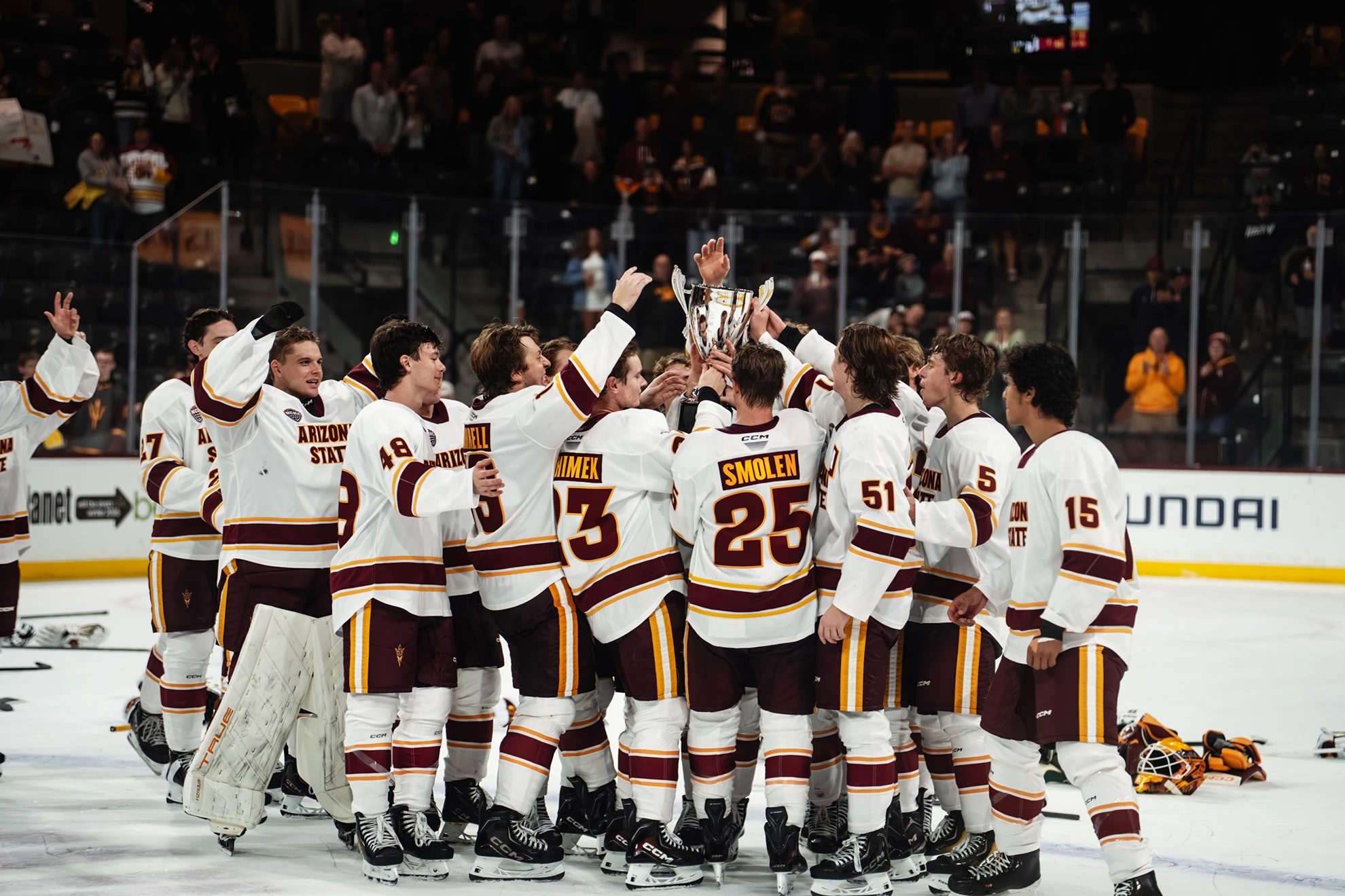 “Winning breads winning,” Powers said. “They get a taste of winning a trophy, a young team this early in the season, we’re going to play for another trophy at our Desert Classic in January. Then it’s our goal to get home ice throughout the NCHC playoffs and play for the ultimate trophy in our conference.”