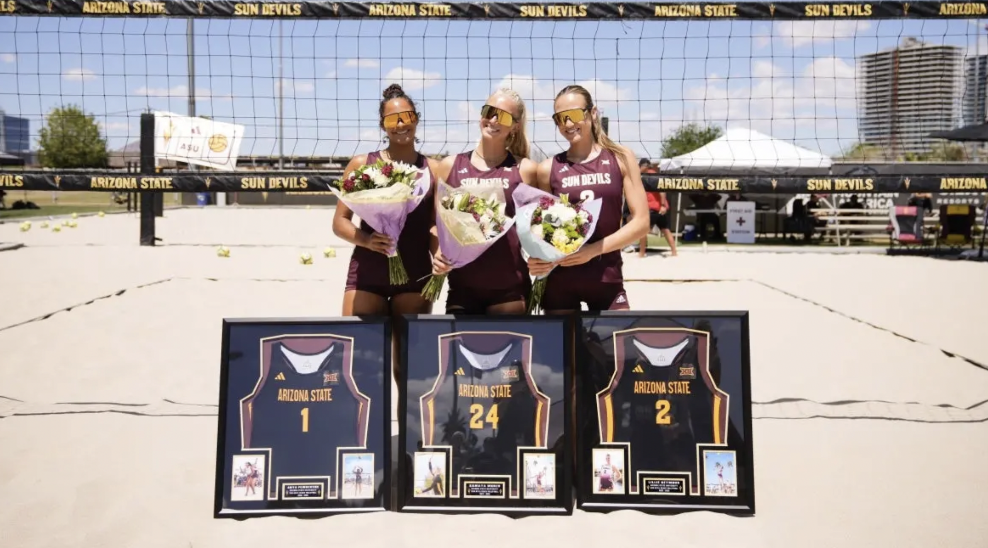 TEMPE, Ariz. — In a dominant conclusion to the regular season home schedule, No. 12 Arizona State beach volleyball swept both UTEP (11-15) and Benedictine Mesa (9-17) 5-0 on a sunny Saturday afternoon in Tempe. With all five courts winning their matches, the Sand Devils improved to a 20-12 record on the year and secured their ninth sweep of the season.