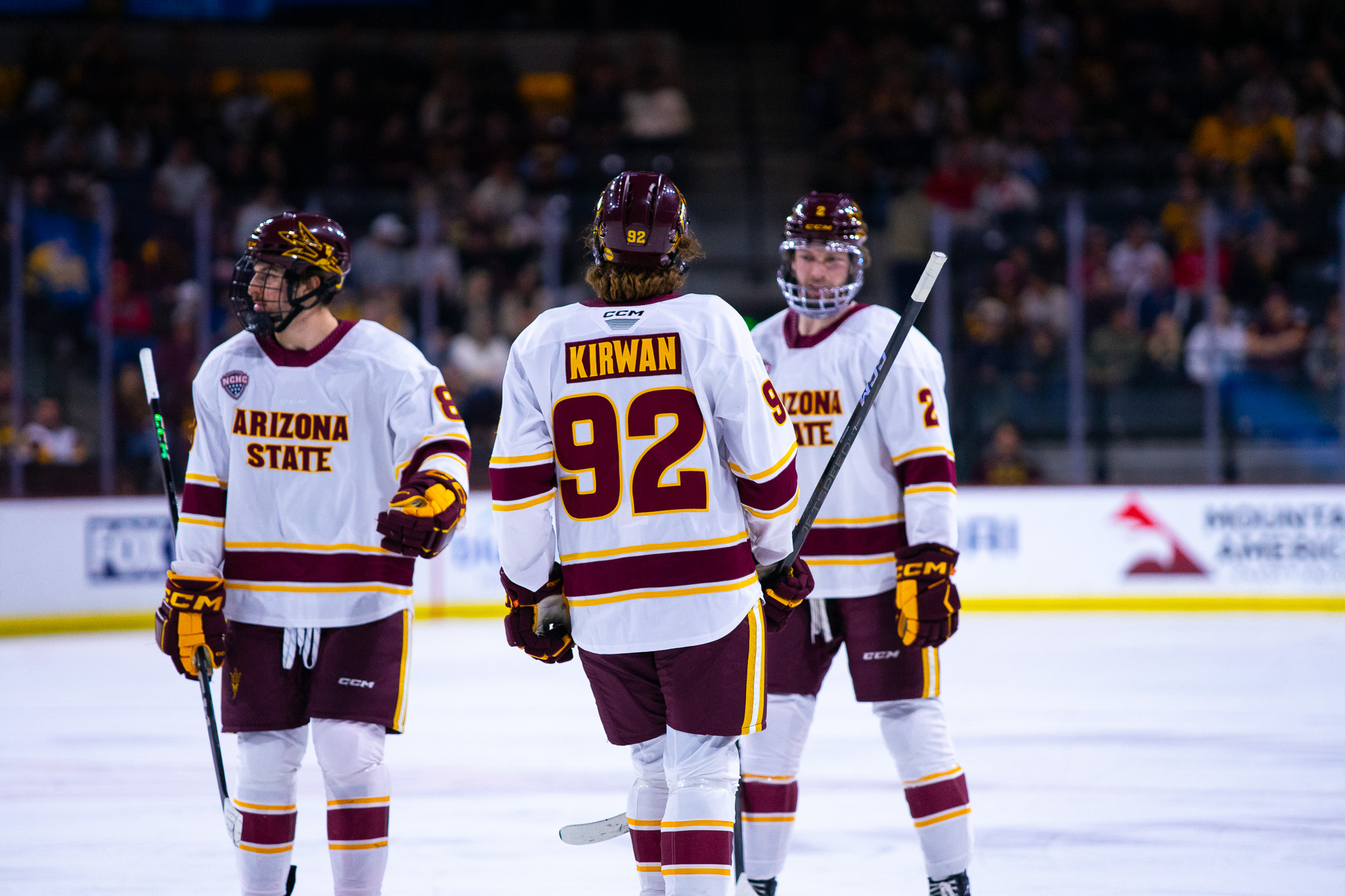 The Sun Devils saw production from all four forward lines tonight, with at least one player scoring a goal. Freshman forward Cullen Potter opened the night (second line), Kirwan with two (first line), Sillinger (third line), and Eckerle (fourth line).