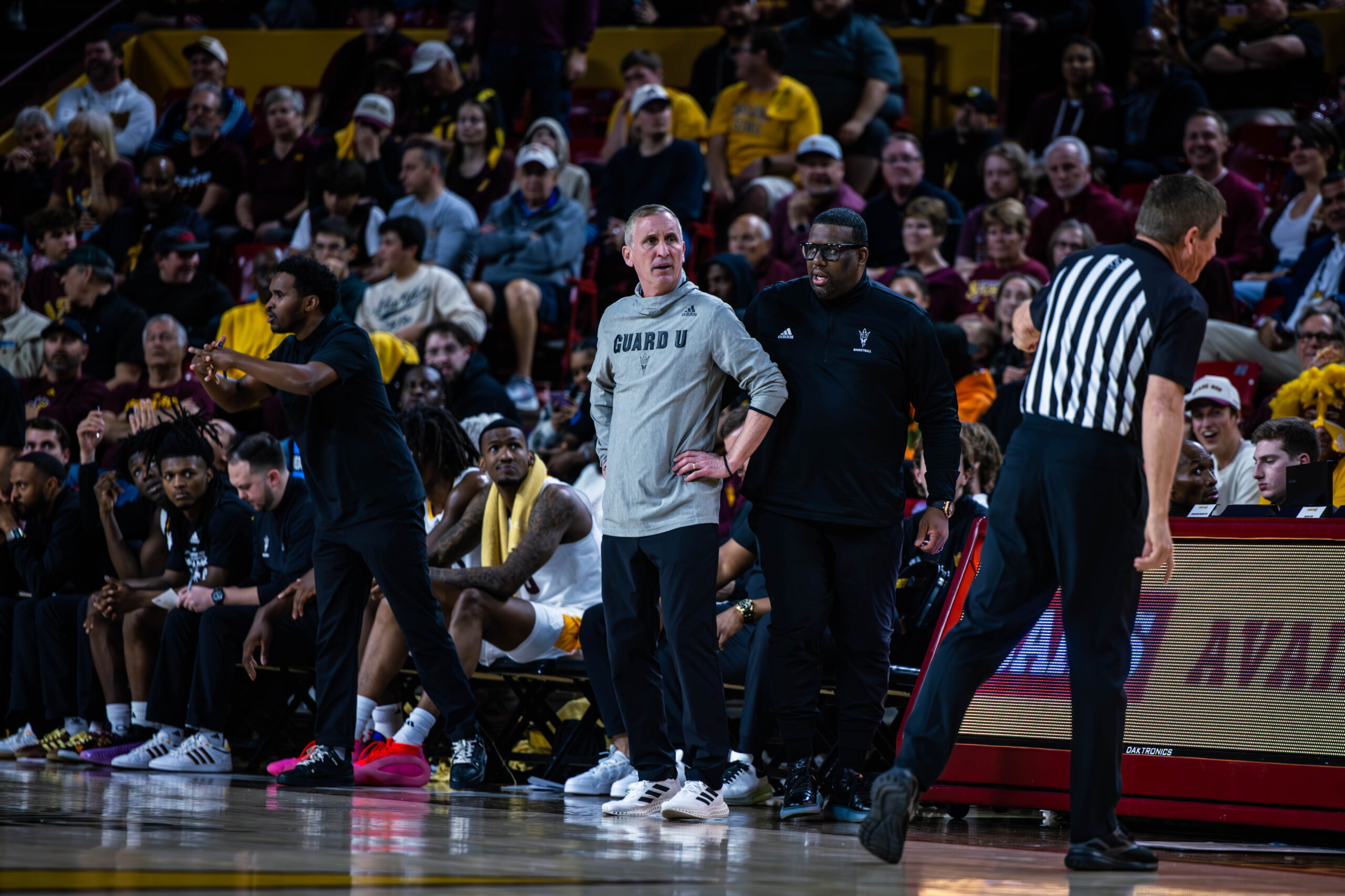 TEMPE—Whenever looking at the sidelines during the last 10 seasons of the Arizona State men’s basketball program, one thing has always been certain. Head coach Bobby Hurley’s face will glow the same color as the seats in Desert Financial Arena: red.