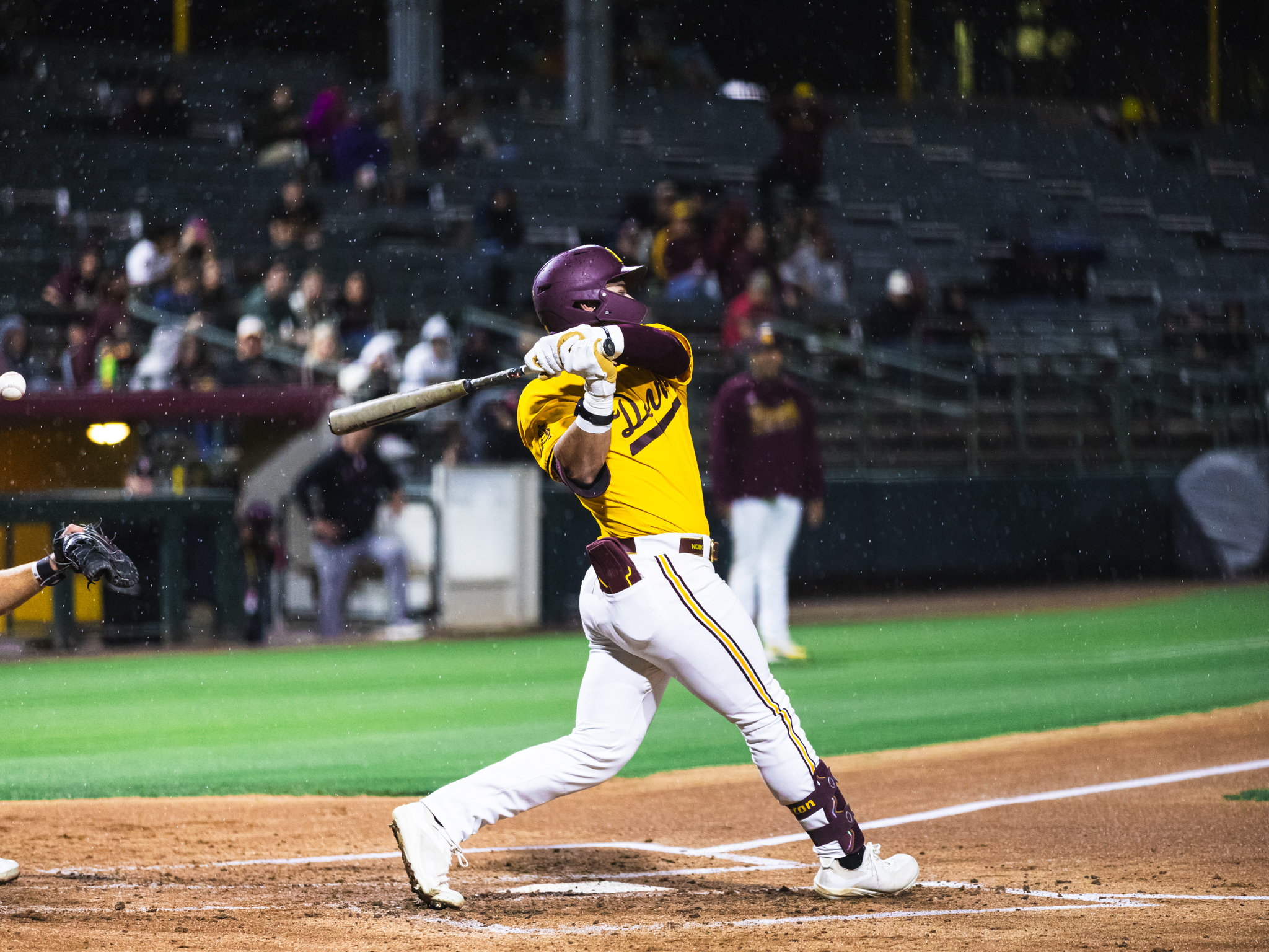 The strange start occurred after a strange ending to the second game of the series. After a rain delay prematurely halted the ending of Friday night’s game, it resumed in the bottom half of the seventh inning at 12:00 p.m. on Saturday, with the bases loaded and redshirt junior second baseman Kyle Walker at the dish. The Sun Devils were able to take the lead and played nearly flawlessly, winning 9-8.