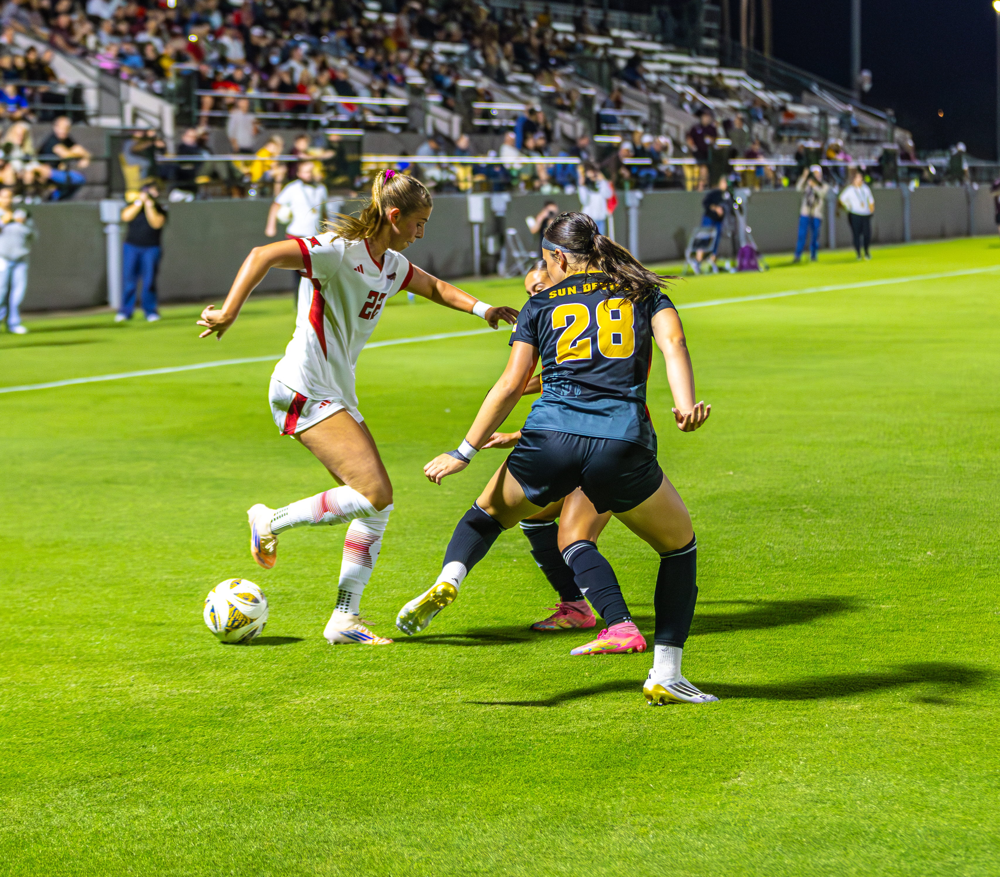 TEMPE — Texas Tech junior forward Taylor Zdrojewski received the ball outside the top right of the Sun Devils’ penalty box in the 85th minute. A packed Sun Devil Soccer Stadium’s “A-S-U” chants were silenced as Zdrojewski ripped the ball past Arizona State senior goalkeeper Pauline Nelles for a 3-2 Red Raider lead.